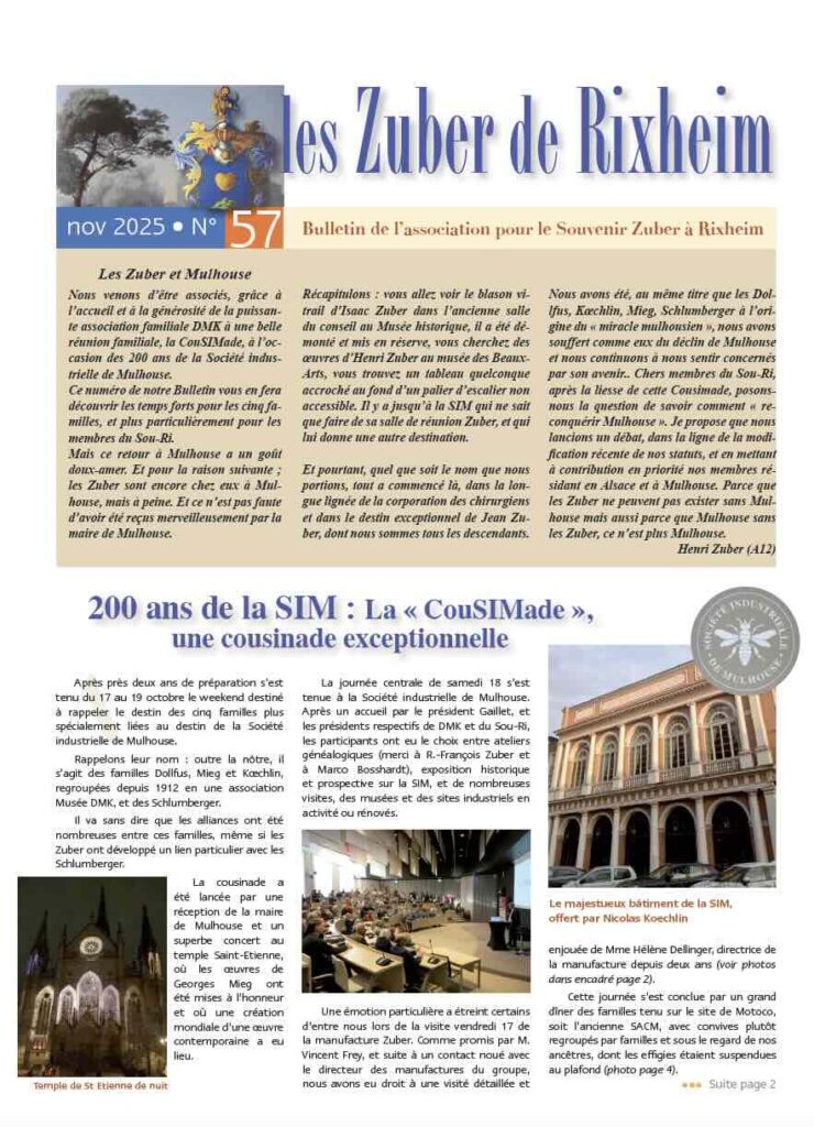 Conrad Zuber, d’Uhwiesen à Mulhouse, par Jean-Louis Zuber/ Recherche Frédéric Zuber désespérément, par Sylvie Hamzaoui / La nouvelle vie de la manufacture de Rixheim / Un coach en entreprise, par Christophe Zuber / Un timbre postal signé Henri Zuber